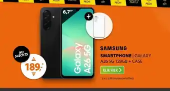 Deze Samsung Galaxy A26 5G 128GB + Clear Case Zwart is nu in de aanbieding bij Expert. Op deze pagina vind je alle informatie over actuele prijzen, actievoorwaarden en looptijd. Vergelijk ook andere relevante aanbiedingen en acties rondom Samsung Galaxy A26 5G 128GB + Clear Case Zwart, zodat je altijd de slimste keuze maakt. De aanbieding loopt van 25-01-2026 tot en met 01-02-2026. Is de actie verlopen? Geen probleem – vergelijkbare deals vind je altijd via deze pagina. Volg eventueel de productcategorie om automatisch op de hoogte te blijven van nieuwe aanbiedingen of prijsdalingen voor Samsung Galaxy A26 5G 128GB + Clear Case Zwart.Veelgestelde vragen over Samsung Galaxy A26 5G 128GB + Clear Case Zwart