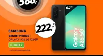 Bekijk de meest recente aanbiedingen en blijf op de hoogte van welke winkels Samsung Galaxy A26 5G 128GB Zwart op korte termijn met korting aanbieden. Niemand betaalt graag te veel – daarom houden wij de prijzen scherp in de gaten. Pas je (boodschappen)lijst aan op basis van acties van deze week én verwachte deals. Sommige aanbiedingen gelden alleen in de winkel, dus check regelmatig waar Samsung Galaxy A26 5G 128GB Zwart het voordeligst verkrijgbaar is.Veelgestelde vragen over Samsung Galaxy A26 5G 128GB Zwart