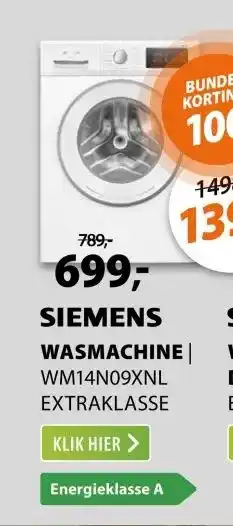 De Siemens WM14N09XNL extraKlasse is momenteel met korting verkrijgbaar bij Expert. Hier vind je alle details over prijs, geldigheidsduur en actievoorwaarden. Vergeet niet om ook andere aanbiedingen en deals voor Siemens WM14N09XNL extraKlasse te bekijken zodat je zeker weet dat je de beste prijs betaalt. De kortingsactie loopt van 08-03-2026 tot 15-03-2026. Is de actie inmiddels verlopen? Geen zorgen, vergelijk dan soortgelijke aanbiedingen of volg de productcategorie voor toekomstige prijsverlagingen. Zo koop je altijd met voordeel.Veelgestelde vragen over Siemens WM14N09XNL extraKlasse