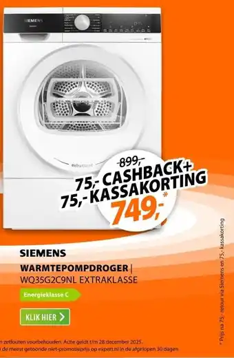 Nu in de aanbieding bij Expert: Siemens WQ35G2C9NL extraKlasse✅ Actie geldig van 20-12 t/m 28-12.