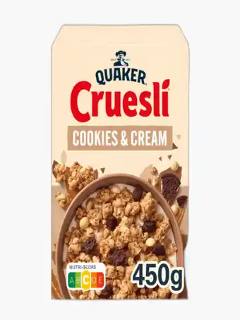 Actuele Quaker cruesli cookies & cream 450g aanbieding bij Flink van 7-04 t/m 22-12.