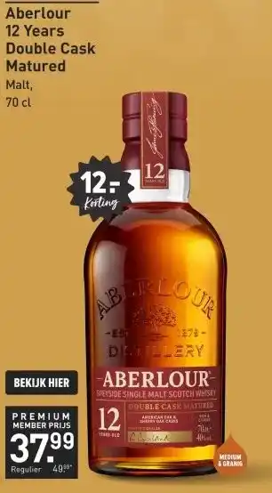 De prijs van de Aberlour 12 Years Double Cask Matured 70CL kan ook teruggevonden worden hierboven op de pagina, samen met de datum van wanneer de aanbieding beschikbaar is. Ook kun je de prijzen in de huidige Gall & Gall folder of op de Gall & Gall website controleren. De aanbiedingen verzekeren je van het kopen van de Gall & Gall producten voor de laagste prijs.