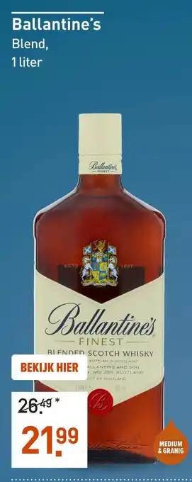 Gall & Gall biedt naast de Ballantine's Blend een ruime collectie producten aan. Houd de wekelijkse Gall & Gall folder in de gaten om de beste aanbiedingen en acties te vinden. Naast Ballantine's Blend, kunt u ook de volgende aanbiedingen vinden: Ballantine's 100CL, Ballantine's & Ballantine's 100CL.