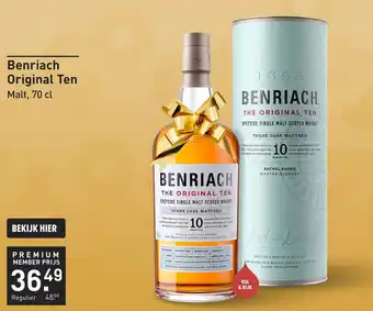 De prijs van de Benriach Original Ten kan ook teruggevonden worden hierboven op de pagina, samen met de datum van wanneer de aanbieding beschikbaar is. Ook kun je de prijzen in de huidige Gall & Gall folder of op de Gall & Gall website controleren. De aanbiedingen verzekeren je van het kopen van de Gall & Gall producten voor de laagste prijs.