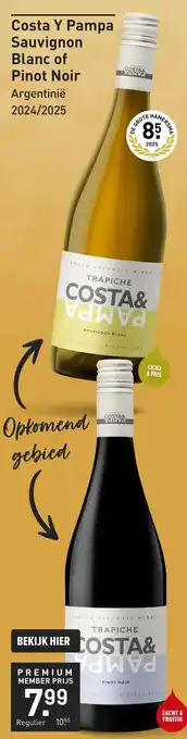 Costa Y Pampa Sauvignon Blanc of Pinot Noir uit Argentinië 2024/2025 is een premium wijn van South Atlantic Wines Trapiche. Dit opkomende gebied in Map Malal Buenos Aires staat bekend om zijn zachte en fruitige smaken. De Costa Y Pampa Sauvignon Blanc is licht en fris, terwijl de Pinot Noir een diepere en rijkere smaak heeft. Met een score van 85 punten is deze wijn een uitstekende keuze voor wijnliefhebbers. Profiteer van de speciale prijs van slechts €7.99 voor Premium Members. Ontdek de grote smaken van South Atlantic Trapiche Wines en geniet van de unieke smaakervaring die deze wijnen te bieden hebben. Bekijk hier Costa Y Pampa Sauvignon Blanc of Pinot Noir en laat je verrassen door de kwaliteit en smaak.