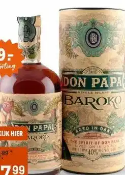 Nu in de aanbieding bij Gall & Gall: Don Papa Baroko 70CL✅ Actie geldig van 19-01 t/m 25-01.