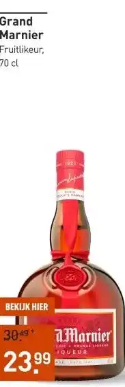 De prijs van de Grand Marnier 70CL kan ook teruggevonden worden hierboven op de pagina, samen met de datum van wanneer de aanbieding beschikbaar is. Ook kun je de prijzen in de huidige Gall & Gall folder of op de Gall & Gall website controleren. De aanbiedingen verzekeren je van het kopen van de Gall & Gall producten voor de laagste prijs.
