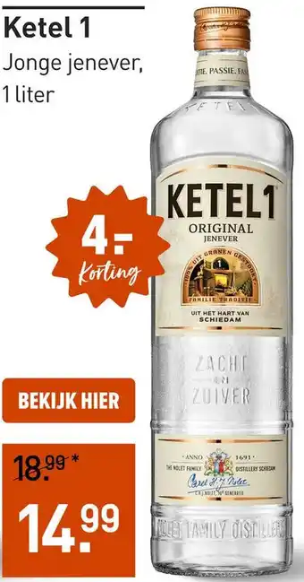 De Ketel is momenteel met korting verkrijgbaar bij Gall & Gall. Hier vind je alle details over prijs, geldigheidsduur en actievoorwaarden. Vergeet niet om ook andere aanbiedingen en deals voor Ketel te bekijken zodat je zeker weet dat je de beste prijs betaalt. De kortingsactie loopt van 16-02-2026 tot 22-02-2026. Is de actie inmiddels verlopen? Geen zorgen, vergelijk dan soortgelijke aanbiedingen of volg de productcategorie voor toekomstige prijsverlagingen. Zo koop je altijd met voordeel.Veelgestelde vragen over Ketel