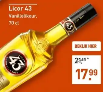 Gall & Gall biedt naast de Licor 43 een ruime collectie producten aan. Houd de wekelijkse Gall & Gall folder in de gaten om de beste aanbiedingen en acties te vinden. Naast Licor 43, kunt u ook de volgende aanbiedingen vinden: Licor 43 100CL, Licor 43 70CL & Licor 43.