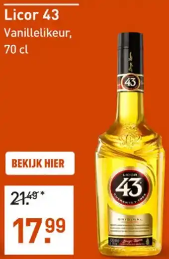 De prijs van de Licor 43 kan ook teruggevonden worden hierboven op de pagina, samen met de datum van wanneer de aanbieding beschikbaar is. Ook kun je de prijzen in de huidige Gall & Gall folder of op de Gall & Gall website controleren. De aanbiedingen verzekeren je van het kopen van de Gall & Gall producten voor de laagste prijs.