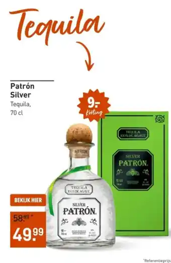 De aanbieding is verkrijgbaar in verschillende winkels, bekijk alle producten om de goedkoopste Patrón silver te krijgen. Als je graag wilt kijken of het artikel met meer korting te koop is in een andere winkel, bekijk de categorie 'Slijters'. Wellicht vind je deze aanbiedingen ook interessant: Patrón Silver 70CL, Heineken Silver & 0,8 Silver Comets 50sh (4).