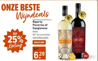 ONZE BESTE Wijndeals: Riporta Pecorino of Sangiovese met 25% Korting!