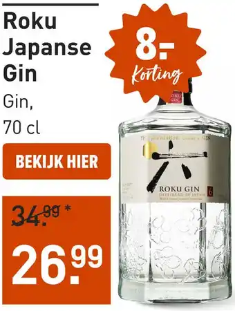 Nu in de aanbieding bij Gall & Gall: Roku Japanse Gin 70CL✅ Actie geldig van 28-04 t/m 3-05.