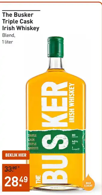 De prijs van de The busker irish whiskey kan ook teruggevonden worden hierboven op de pagina, samen met de datum van wanneer de aanbieding beschikbaar is. Ook kun je de prijzen in de huidige Gall & Gall folder of op de Gall & Gall website controleren. De aanbiedingen verzekeren je van het kopen van de Gall & Gall producten voor de laagste prijs.