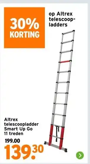 Nu in de aanbieding bij GAMMA: Altrex telescoopladder Smart Up Go✅ Actie geldig van 2-03 t/m 8-03.