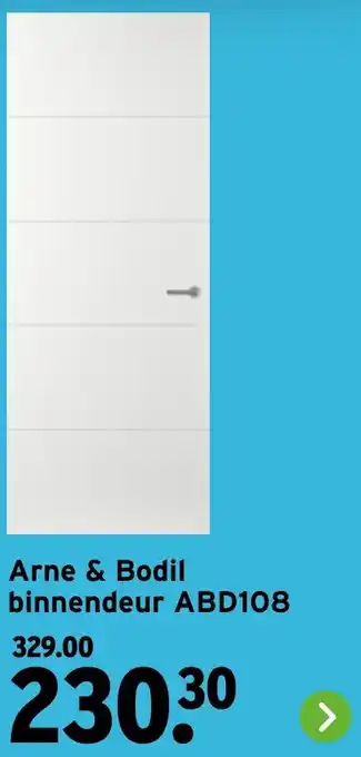 GAMMA biedt naast de Arne & Bodil binnendeur ABD108 een ruime collectie producten aan. Houd de wekelijkse GAMMA folder in de gaten om de beste aanbiedingen en acties te vinden. Naast Arne & Bodil binnendeur ABD108, kunt u ook de volgende aanbiedingen vinden: Arne & Bodil binnendeur ABD108, Arne & Bodil binnendeur & Arne & Bodil binnendeur ABT305.