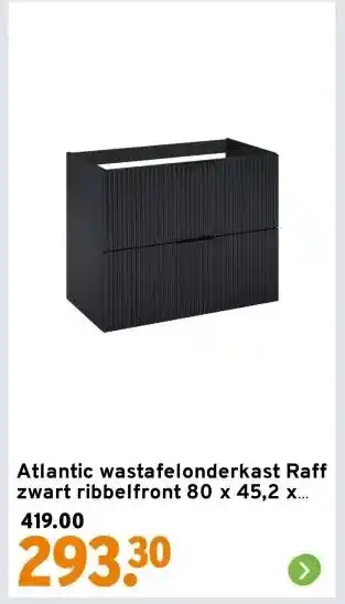 Deze Atlantic wastafelonderkast Raff zwart ribbelfront 80 x 45,2 x 63,5 cm is nu in de aanbieding bij GAMMA. Op deze pagina vind je alle informatie over actuele prijzen, actievoorwaarden en looptijd. Vergelijk ook andere relevante aanbiedingen en acties rondom Atlantic wastafelonderkast Raff zwart ribbelfront 80 x 45,2 x 63,5 cm, zodat je altijd de slimste keuze maakt. De aanbieding loopt van 02-02-2026 tot en met 08-02-2026. Is de actie verlopen? Geen probleem – vergelijkbare deals vind je altijd via deze pagina. Volg eventueel de productcategorie om automatisch op de hoogte te blijven van nieuwe aanbiedingen of prijsdalingen voor Atlantic wastafelonderkast Raff zwart ribbelfront 80 x 45,2 x 63,5 cm.Veelgestelde vragen over Atlantic wastafelonderkast Raff zwart ribbelfront 80 x 45,2 x 63,5 cm
