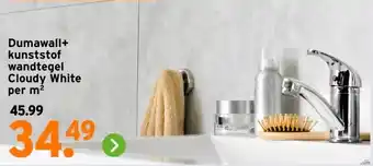 De Dumawall+ kunststof wandtegel Cloudy White is momenteel met korting verkrijgbaar bij GAMMA. Hier vind je alle details over prijs, geldigheidsduur en actievoorwaarden. Vergeet niet om ook andere aanbiedingen en deals voor Dumawall+ kunststof wandtegel Cloudy White te bekijken zodat je zeker weet dat je de beste prijs betaalt. De kortingsactie loopt van 27-02-2026 tot 01-03-2026. Is de actie inmiddels verlopen? Geen zorgen, vergelijk dan soortgelijke aanbiedingen of volg de productcategorie voor toekomstige prijsverlagingen. Zo koop je altijd met voordeel.Veelgestelde vragen over Dumawall+ kunststof wandtegel Cloudy White