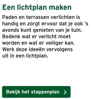 GAMMA biedt naast de Een lichtplan maken een ruime collectie producten aan. Houd de wekelijkse GAMMA folder in de gaten om de beste aanbiedingen en acties te vinden. Naast Een lichtplan maken, kunt u ook de volgende aanbiedingen vinden: Denk na over een lichtplan, Zelf een pergola maken & De krijtjes maken vriendjes.