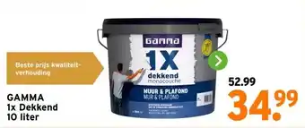 De prijs van de GAMMA 1x Dekkend kan ook teruggevonden worden hierboven op de pagina, samen met de datum van wanneer de aanbieding beschikbaar is. Ook kun je de prijzen in de huidige GAMMA folder of op de GAMMA website controleren. De aanbiedingen verzekeren je van het kopen van de GAMMA producten voor de laagste prijs.