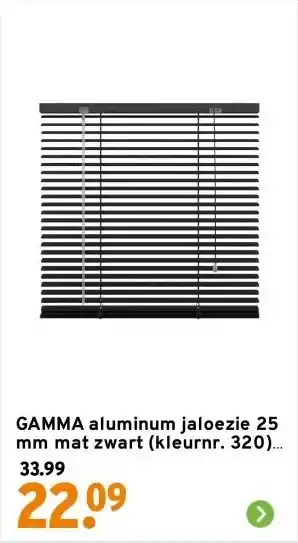 De prijs van de GAMMA aluminum jaloezie 25 mm mat zwart (kleurnr. 320) 60x180 cm (bxh) kan ook teruggevonden worden hierboven op de pagina, samen met de datum van wanneer de aanbieding beschikbaar is. Ook kun je de prijzen in de huidige GAMMA folder of op de GAMMA website controleren. De aanbiedingen verzekeren je van het kopen van de GAMMA producten voor de laagste prijs.