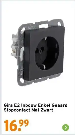 Nu in de aanbieding bij GAMMA: Gira E2 Inbouw Enkel Geaard Stopcontact Mat Zwart✅ Actie geldig van 2-02 t/m 8-02.