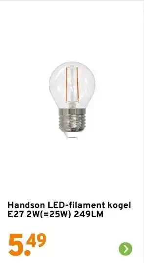 Koop Handson LED-filament kogel E27 2W(=25W) 249LM komende week met korting