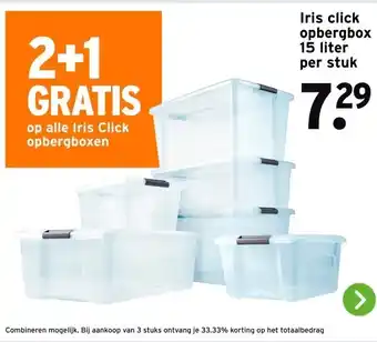De prijs van de Iris click opbergbox kan ook teruggevonden worden hierboven op de pagina, samen met de datum van wanneer de aanbieding beschikbaar is. Ook kun je de prijzen in de huidige GAMMA folder of op de GAMMA website controleren. De aanbiedingen verzekeren je van het kopen van de GAMMA producten voor de laagste prijs.