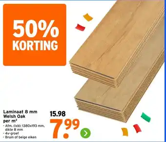 Nu in de aanbieding bij GAMMA: Laminaat 8 mm Welsh Oak per m²✅ Actie geldig van 28-04 t/m 3-05.