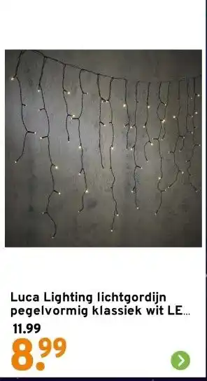 Nu in de aanbieding bij GAMMA: Luca Lighting lichtgordijn pegelvormig klassiek wit LED verlichting 3.5 m inclusief timer✅ Actie geldig van 15-12 t/m 21-12.