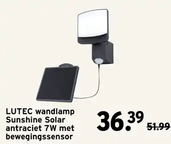 LUTEC wandlamp Sunshine Solar antraciet 7W met bewegingssensor aanbieding en online acties bij GAMMA