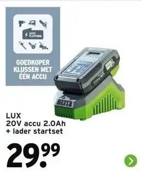 LUX 20V accu 2.0Ah + lader startset aanbieding bij GAMMA – binnenkort verwacht