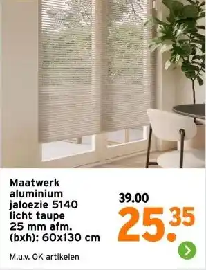 Neem een kijkje voor de goedkoopste producten tussen alle aanbiedingen! Als je wilt weten of GAMMA de hoogste korting voor Maatwerk aluminium jaloezie 5140 licht taupe heeft, vergelijk het op de Topic page of met andere winkels.