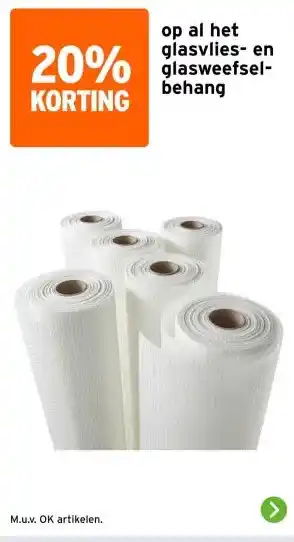 Nu in de aanbieding bij GAMMA: op al het glasvlies- en glasweefsel- behang✅ Actie geldig van 28-04 t/m 3-05.