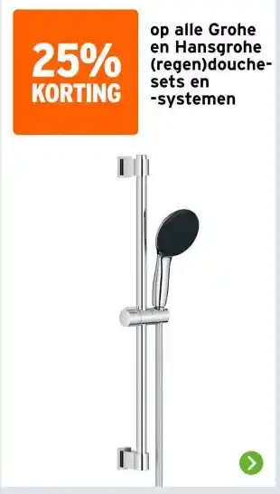 op alle Grohe en Hansgrohe (regen)douche- sets en -systemen korting bij GAMMA