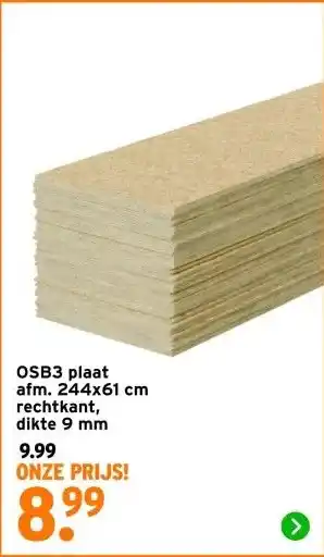 De OSB3 plaat is momenteel met korting verkrijgbaar bij GAMMA. Hier vind je alle details over prijs, geldigheidsduur en actievoorwaarden. Vergeet niet om ook andere aanbiedingen en deals voor OSB3 plaat te bekijken zodat je zeker weet dat je de beste prijs betaalt. De kortingsactie loopt van 23-02-2026 tot 01-03-2026. Is de actie inmiddels verlopen? Geen zorgen, vergelijk dan soortgelijke aanbiedingen of volg de productcategorie voor toekomstige prijsverlagingen. Zo koop je altijd met voordeel.Veelgestelde vragen over OSB3 plaat