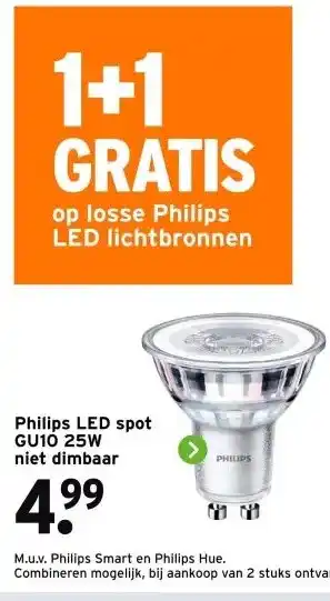 Philips LED spot GU10 25W niet dimbaar aanbieding bij GAMMA – binnenkort verwacht