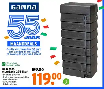 Nu in de aanbieding bij GAMMA: Regenton muurtank 276 liter✅ Actie geldig van 28-04 t/m 3-05.