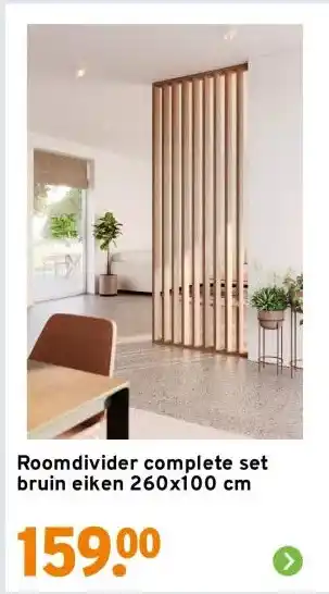 De prijs van de Roomdivider complete set bruin eiken 260x100 cm kan ook teruggevonden worden hierboven op de pagina, samen met de datum van wanneer de aanbieding beschikbaar is. Ook kun je de prijzen in de huidige GAMMA folder of op de GAMMA website controleren. De aanbiedingen verzekeren je van het kopen van de GAMMA producten voor de laagste prijs.