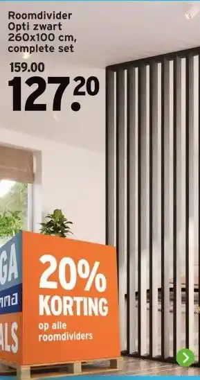 De Roomdivider Opti zwart is momenteel met korting verkrijgbaar bij GAMMA. Hier vind je alle details over prijs, geldigheidsduur en actievoorwaarden. Vergeet niet om ook andere aanbiedingen en deals voor Roomdivider Opti zwart te bekijken zodat je zeker weet dat je de beste prijs betaalt. De kortingsactie loopt van 19-01-2026 tot 25-01-2026. Is de actie inmiddels verlopen? Geen zorgen, vergelijk dan soortgelijke aanbiedingen of volg de productcategorie voor toekomstige prijsverlagingen. Zo koop je altijd met voordeel.Veelgestelde vragen over Roomdivider Opti zwart