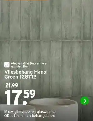 Nu in de aanbieding bij GAMMA: Vliesbehang Hanoi Groen 128712✅ Actie geldig van 23-02 t/m 1-03.