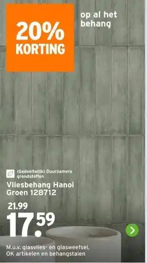 Nu in de aanbieding bij GAMMA: Vliesbehang Hanoi Groen 128712✅ Actie geldig van 27-02 t/m 1-03.