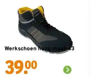 De Werkschoen hoog maat 43 is momenteel met korting verkrijgbaar bij GAMMA. Hier vind je alle details over prijs, geldigheidsduur en actievoorwaarden. Vergeet niet om ook andere aanbiedingen en deals voor Werkschoen hoog maat 43 te bekijken zodat je zeker weet dat je de beste prijs betaalt. De kortingsactie loopt van 20-04-2026 tot 26-04-2026. Is de actie inmiddels verlopen? Geen zorgen, vergelijk dan soortgelijke aanbiedingen of volg de productcategorie voor toekomstige prijsverlagingen. Zo koop je altijd met voordeel.Veelgestelde vragen over Werkschoen hoog maat 43