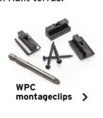 GAMMA biedt naast de WPC montageclips een ruime collectie producten aan. Houd de wekelijkse GAMMA folder in de gaten om de beste aanbiedingen en acties te vinden. Naast WPC montageclips, kunt u ook de volgende aanbiedingen vinden: WPC vlonderplank, aanbieding 2 & aanbieding 3.