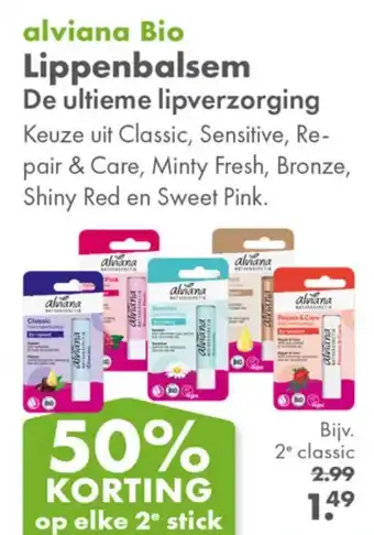 De aanbieding is verkrijgbaar in verschillende winkels, bekijk alle producten om de goedkoopste alviana Bio Lippenbalsem te krijgen. Als je graag wilt kijken of het artikel met meer korting te koop is in een andere winkel, bekijk de categorie 'Drogist en Parfumerie'. Wellicht vind je deze aanbiedingen ook interessant: alviana Hydro sheet mask Hydraterend gezichtsmasker, Swaab Lippenbalsem - 4.8g & Swaab Lippenbalsem.