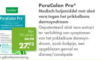 PuraColon Pro® is een medisch hulpmiddel met aloë vera-extract, speciaal ontwikkeld voor de verlichting van symptomen van het Prikkelbare Darm Syndroom (PDS). Dit gepatenteerde aloë vera-extract helpt bij het verminderen van klachten zoals buikpijn, een opgeblazen gevoel en diarree/constipatie. Met 30 zakjes per verpakking is PuraColon Pro® gemakkelijk in gebruik. Lees voor het gebruik altijd de gebruiksaanwijzing. Dit product van Purasana is geschikt voor mensen die last hebben van het Prikkelbare Darm Syndroom en op zoek zijn naar een natuurlijke oplossing. Bestel PuraColon Pro® vandaag nog voor slechts €34.90 en ervaar zelf de verlichting van PDS-symptomen.