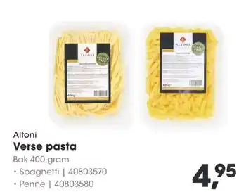 De Altoni Verse pasta is momenteel met korting verkrijgbaar bij HANOS. Hier vind je alle details over prijs, geldigheidsduur en actievoorwaarden. Vergeet niet om ook andere aanbiedingen en deals voor Altoni Verse pasta te bekijken zodat je zeker weet dat je de beste prijs betaalt. De kortingsactie loopt van 26-01-2026 tot 08-02-2026. Is de actie inmiddels verlopen? Geen zorgen, vergelijk dan soortgelijke aanbiedingen of volg de productcategorie voor toekomstige prijsverlagingen. Zo koop je altijd met voordeel.Veelgestelde vragen over Altoni Verse pasta