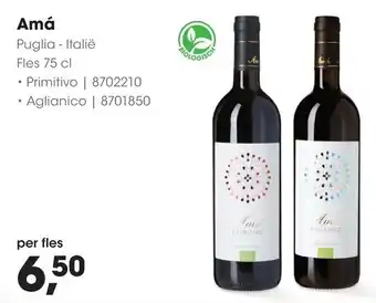 Biologische Amá Primitivo uit Puglia - Italië | 75 cl fles per stuk