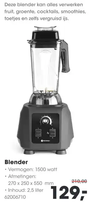 HANOS biedt naast de Blender een ruime collectie producten aan. Houd de wekelijkse HANOS folder in de gaten om de beste aanbiedingen en acties te vinden. Naast Blender, kunt u ook de volgende aanbiedingen vinden: Blender PRO XTRA 25L, Ninja blender 3-in-1 & Blender Zwart Retro OldScool 600W 1.5 liter - 2 snelheden + pulse.