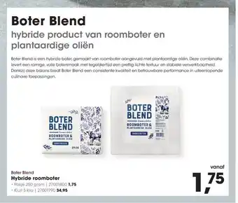 Deze Boter Blend Hybride roomboter is nu in de aanbieding bij HANOS. Op deze pagina vind je alle informatie over actuele prijzen, actievoorwaarden en looptijd. Vergelijk ook andere relevante aanbiedingen en acties rondom Boter Blend Hybride roomboter, zodat je altijd de slimste keuze maakt. De aanbieding loopt van 12-01-2026 tot en met 25-01-2026. Is de actie verlopen? Geen probleem – vergelijkbare deals vind je altijd via deze pagina. Volg eventueel de productcategorie om automatisch op de hoogte te blijven van nieuwe aanbiedingen of prijsdalingen voor Boter Blend Hybride roomboter.Veelgestelde vragen over Boter Blend Hybride roomboter